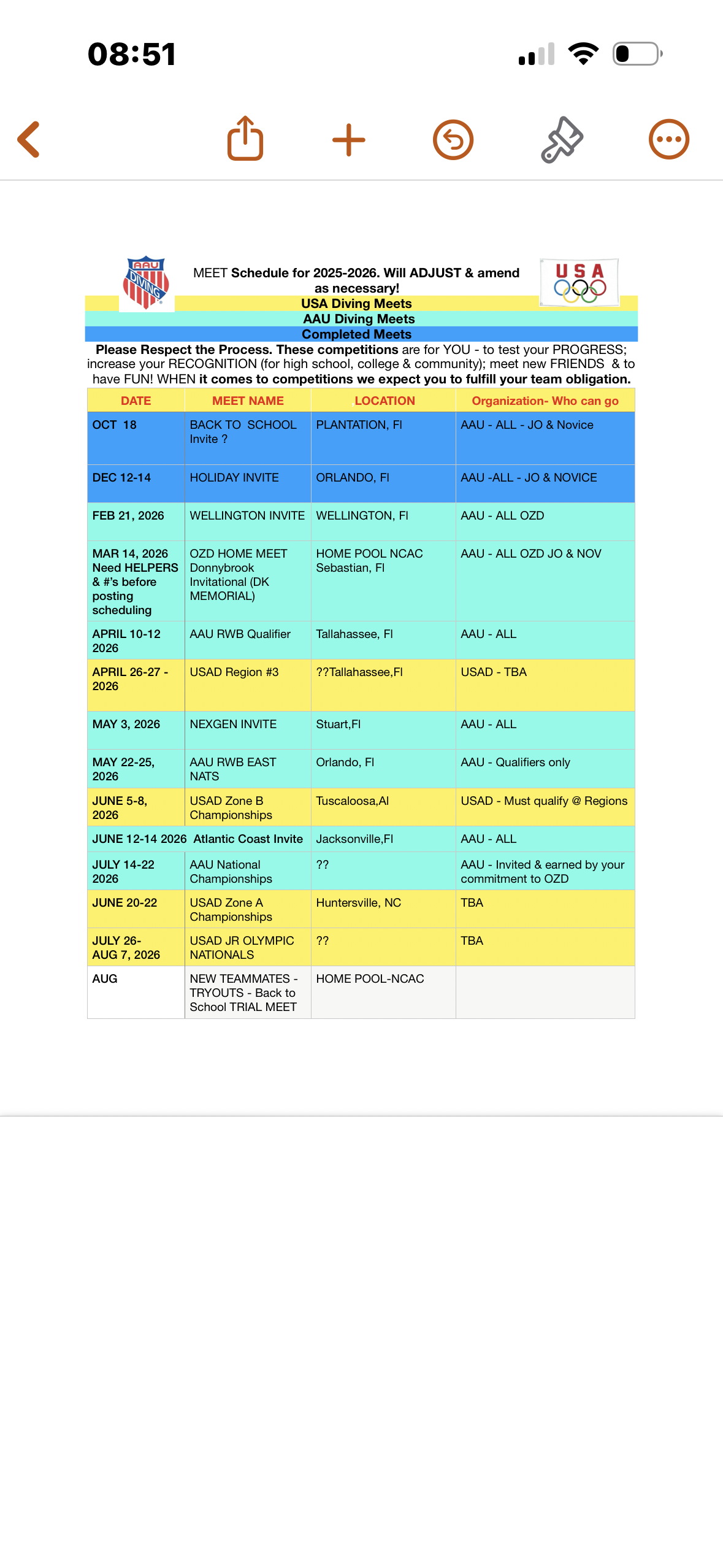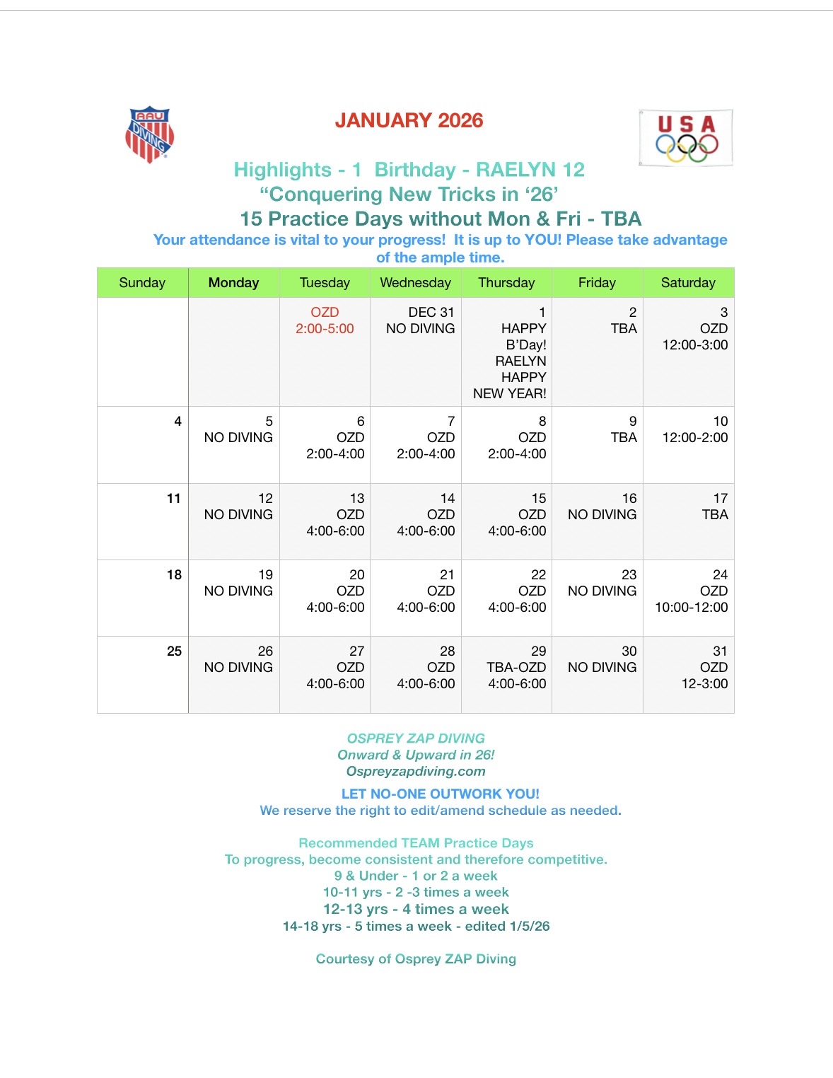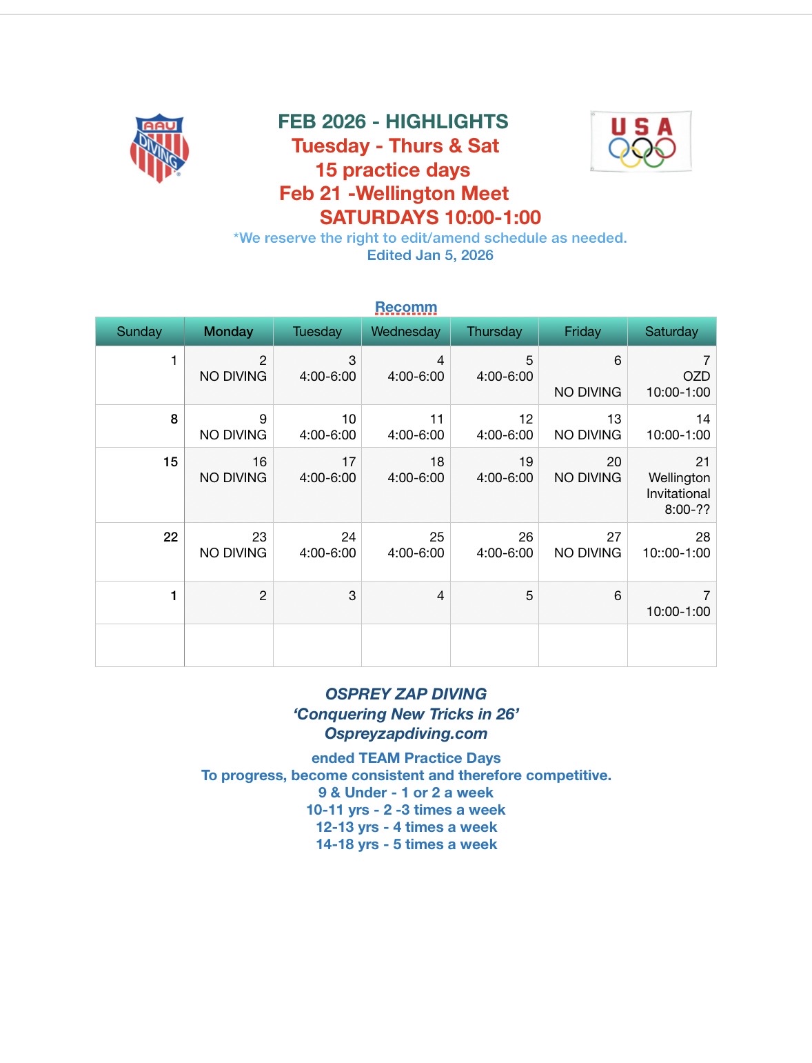 Please check back to keep updated. Our weekly schedules fluctuate due to weather & for the needs of the team at certain times of the year. Thanks.